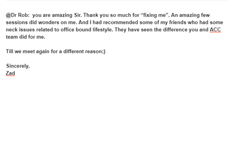 @Dr Rob: You are amazing Sir. Thank you so much for “fixing me”. An amazing few sessions did wonders on me. And...
