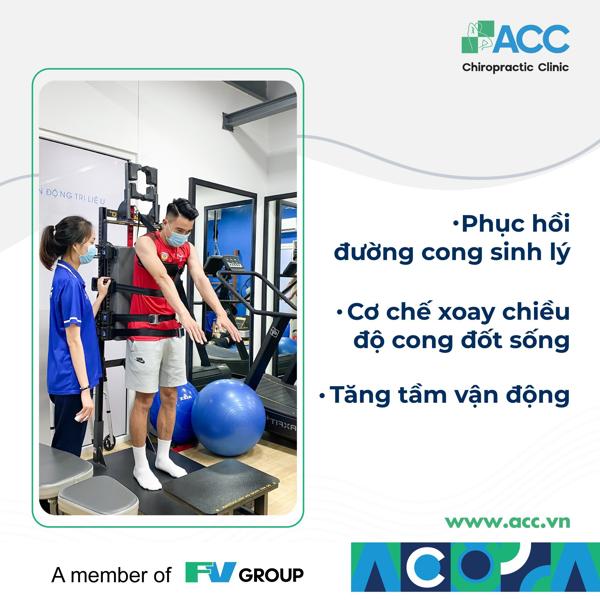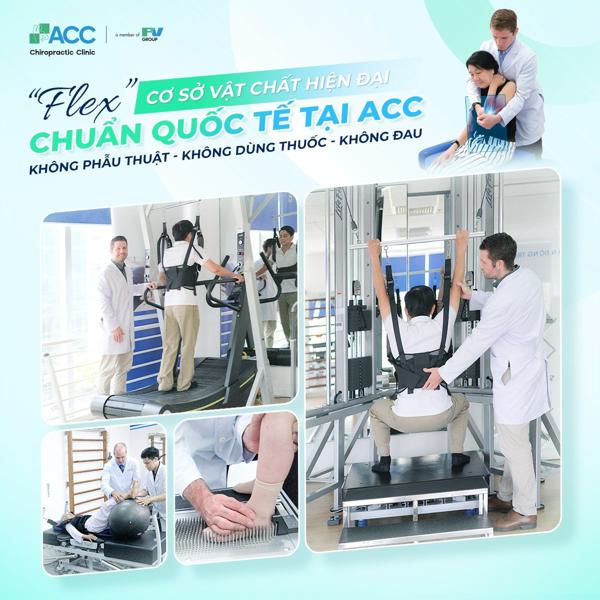Theo đó, ACC (thành viên của Tập đoàn FV) là phòng khám tiên phong với phương pháp Trị liệu thần kinh cột sống kết hợp Vật lý trị liệu – Phục hồi chức năng mà không dùng thuốc hoặc phẫu thuật. Với đội ngũ bác sĩ nước ngoài hơn 16 năm kinh nghiệm, ACC đã giúp hàng chục nghìn bệnh nhân có lại một cột sống chuẩn đường cong sinh lý và khôi phục chức năng vận động bình thường.